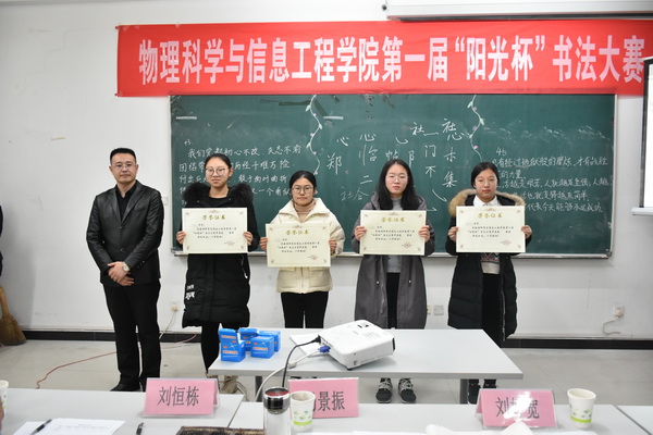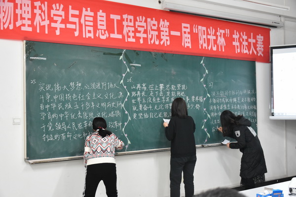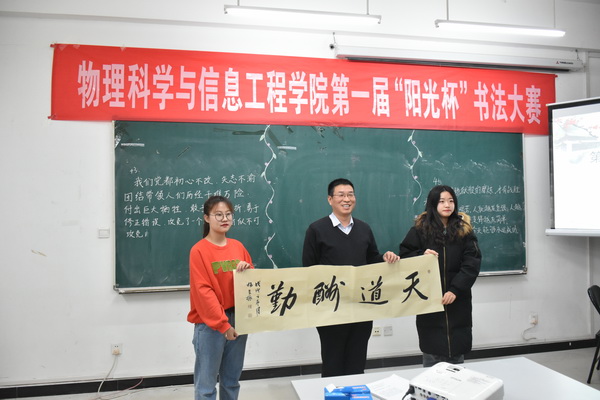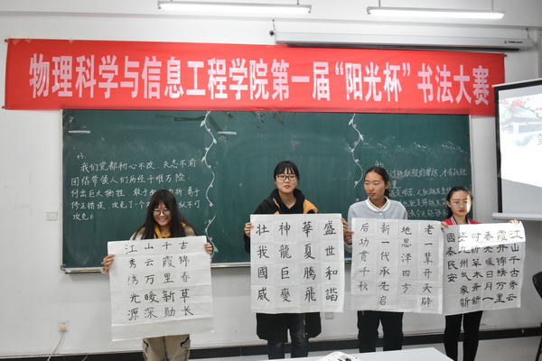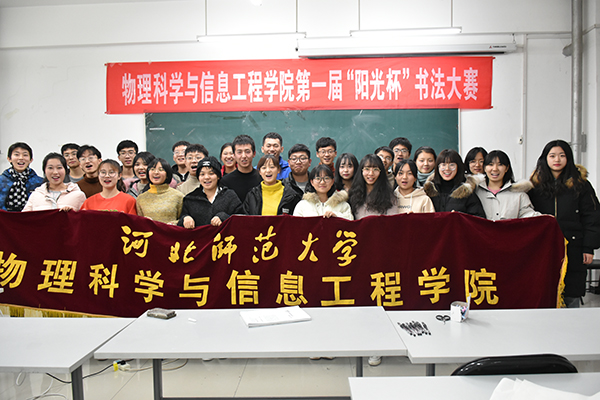 12月6日,韩国色情 在理科群楼2号楼A302举办了首届“阳光杯”书法大赛。比赛特邀信息技术韩国色情 副院长杨景振、国际交流韩国色情 办公室主任史洪存、阳光教育集团创始人刘好宽、中国未来教师协会会长刘恒栋等担任评委;校团委书记马建国、韩国色情 中学物理教育教学部主任魏国强莅临指导,韩国色情 书法爱好者共计90余人观看了比赛。