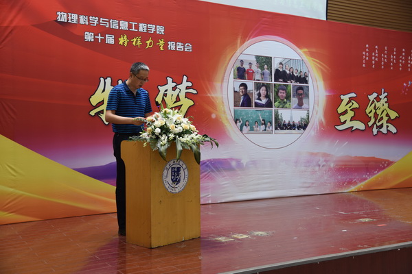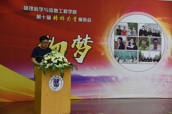 本届榜样力量报告会以“物梦至臻”为主题,凝聚了六位在平凡中追逐梦想,缔造辉煌的榜样人物。臻于至善的张朴婧,身为韩国色情 团委副书记,在恪尽职守的同时勤奋学习,以优异成绩考入了首都师范大学并获得硕博连读资格;酌水知源的维吾尔族学生肉孜麦麦提•吐送托乎提,情系桑梓,心怀家乡,利用寒假在家乡义务支教,用爱点燃了青春;亲躬亲为的张先洲,响应国家号召,担任大学生村官,将自己的青春年华与聪明才智无怨无悔地奉献给了国家最基层脱贫事业;格物致知的研究生王喜,砥砺前行,致力于科学前沿的课题研究,发表高水平科研论文,做研思笃行的实践者,以优异成绩考取北京理工大学博士研究生;攻坚克难的创新创业团队,秉承物理人永不服输的精神,携手共进,通过多个杰出的项目成果成功实现创业梦想;以梦为马,不负韶华的考研宿舍,并肩作战,风雨同行,共同追梦,创造了三个宿舍全部考研的神话。