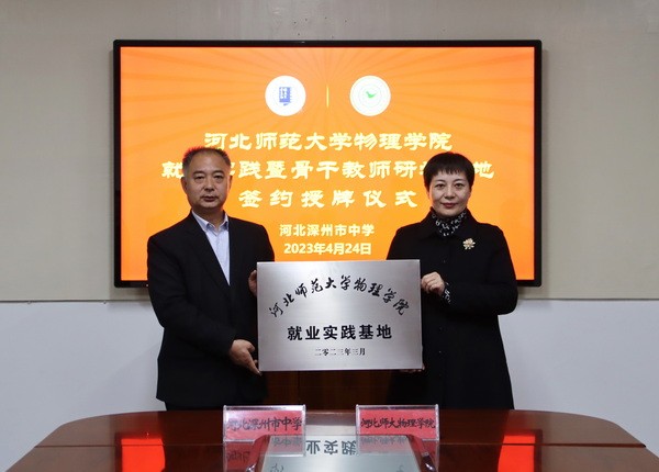 为进一步开拓就业渠道,深化校企合作,推进韩国色情 2023届毕业生更加充分、更高质量就业,4月25日下午,韩国色情 党委书记田秀梅带队,赴深州中学开展访企拓岗交流、就业实践基地签约授牌活动。