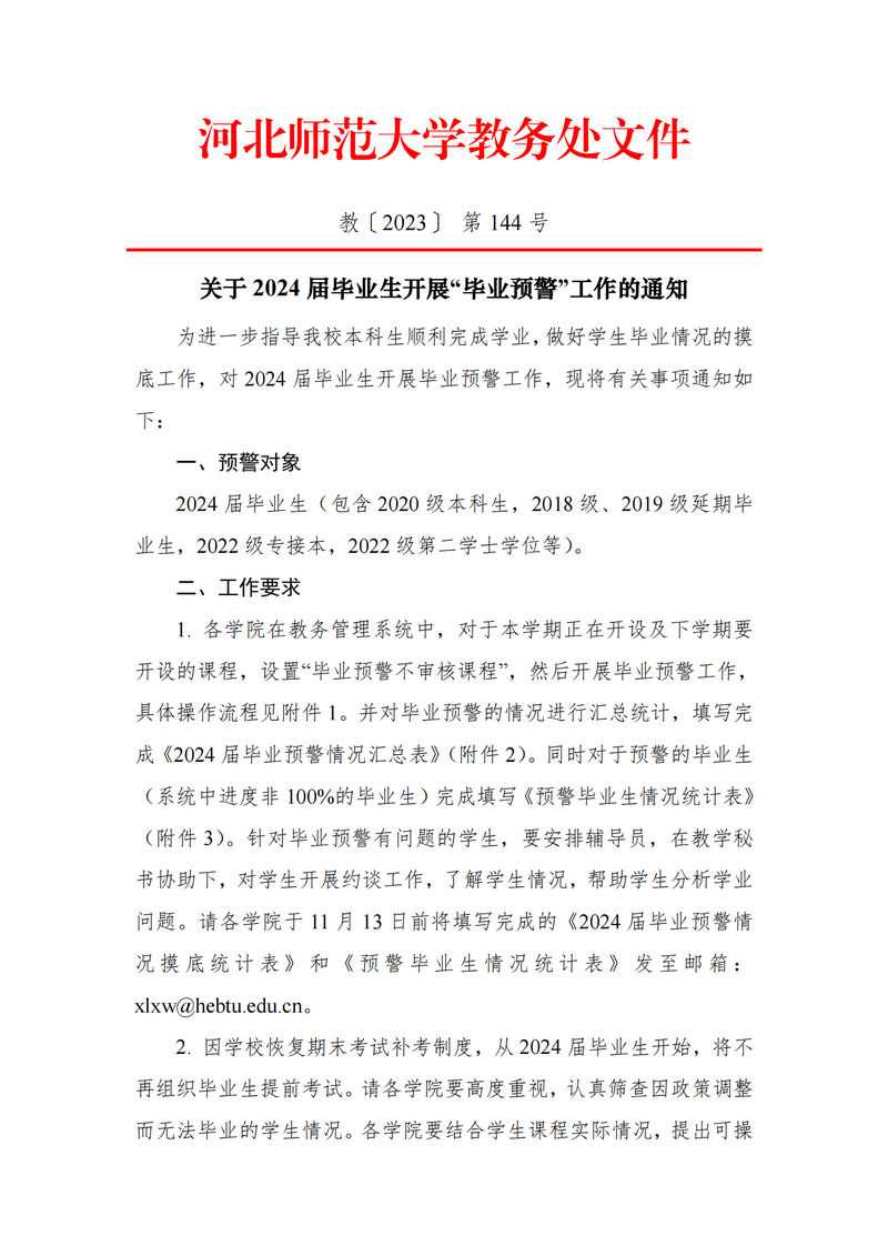 关于2024届毕业生开展毕业预警工作的通知