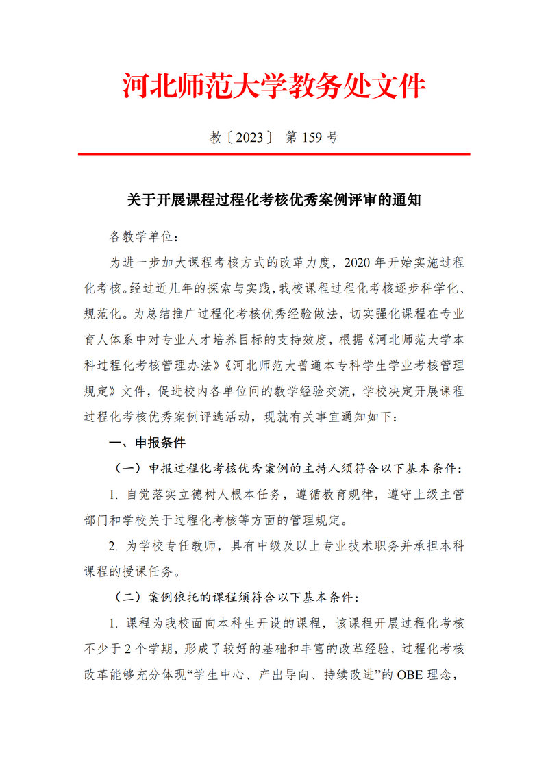 关于开展课程过程化考核优秀案例评选的通知